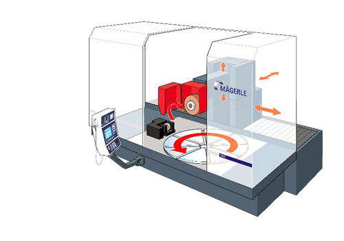 帶圓臺的MÄGERLE MGC – 磨削專家 MGC圓臺磨削中心具有2.5米的圓臺直徑及最大拉力可達12噸,是其世界獨一無二。電力渦輪機行業的龍頭企業正是依靠著這個強大的設計概念。特別是對于曲軸圓錐齒圈和弧形齒圈(曲齒耦合)的渦輪盤加工,此磨削中心提供了無與倫比的高磨削質量。直接驅動的靜壓軸承圓臺通過小于三角秒的定位精度實現要求的加工精度。