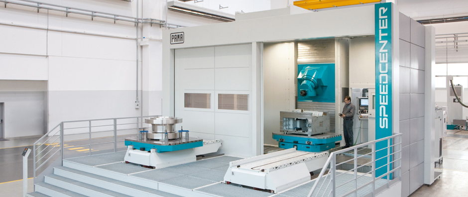 Speedcenter產(chǎn)品系列由三種基本機型組成,托盤尺寸從1250*1250mm到2000*2500mm,工件最大回轉(zhuǎn)直徑從3000mm到4600mm. ●鐵屑輸送器和冷卻液回收系統(tǒng),集成在機床防護裝置內(nèi) ●有多種CNC系統(tǒng)可供選擇:Siemens 840D sl;Fanuc 31i-A5;或Heidenhain Itnc530 ●具有高剛性、高品質(zhì)和高精度,結(jié)合高主軸轉(zhuǎn)速,功率和扭矩,確保在鑄鐵、鋼和鈦合金的粗精加工過程中有最優(yōu)的鐵屑切除速度 ●X軸和Z軸床身安裝于同一水平地面上,以降低機床安裝時間和地基土建成本 ●Y軸采用雙滾珠絲杠,以保證高動態(tài)性能;X軸由固定滾珠絲杠和旋轉(zhuǎn)螺母傳動,以確保最大剛性 ●可進行輪廓加工的閉式靜壓工作臺,通過一個雙小齒輪齒圈系統(tǒng)驅(qū)動(預載消隙),并實現(xiàn)優(yōu)化的4軸和5軸聯(lián)動加工 ●所以線性軸配有大尺寸線性滾珠導軌 ●Speedcenter臥式加工中心主軸箱可 選擇H型-臥式,HV型-立臥兩用和A型-擺頭式,主軸功率可達到54KW,提供電主軸,轉(zhuǎn)速高達15000rpm(用于H型-臥式主軸箱和A型-擺頭式主軸箱) ●Speedcenter臥式加工中心,具有高主軸轉(zhuǎn)速、高功率、高扭矩、高進給速度和加速度,優(yōu)良的加工精度,提供最高生產(chǎn)效率 ●5軸聯(lián)動,可加工復雜型面 ●工件最大回轉(zhuǎn)直徑范圍:3000mm-4600mm